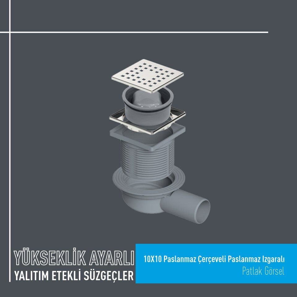 10x10 Paslanmaz Çerçeveli Yalıtım Etekli Süzgeç Alttan Çıkışlı