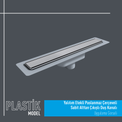 Plastik Yalıtım Etekli Paslanmaz Çerçeveli Alttan Sabit Çıkışlı Plastik Duş Kanalı